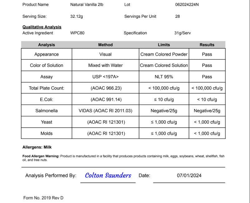 2lb Whey Armor Natural Protein Vanilla w/Stevia & Natural Flavor Non - GMO