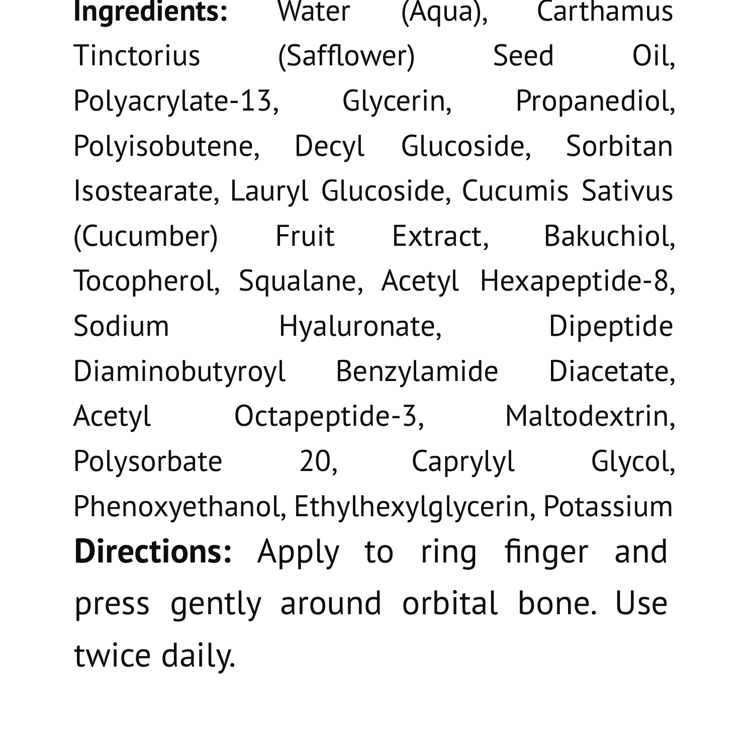 This new and improved formula addresses dark circles, fine lines, and puffiness around the eye area. This cream contains Bakuchiol and Vitamin E to hydrate, brighten, and provide antioxidant support. Peptides, collagen, squalane, and hyaluronic acid create a multi-faceted system that hydrates, and plumps. Now formulated without synthetic fragrance and colorants.