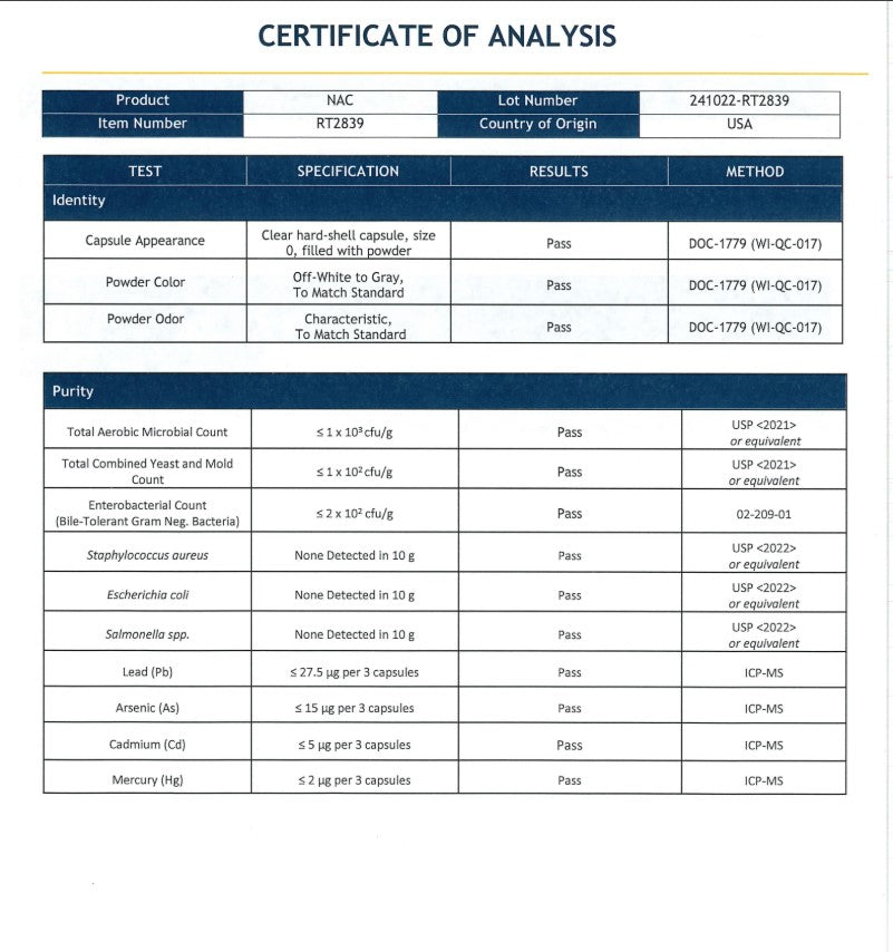 NAC Plus is developed based on cutting-edge scientific research and expert formulation to support healthy detoxification, antioxidant status, respiratory health, and glutathione status in the body. Our formula is the choice for doctors seeking to enhance their patients' well-being. Utilize our formula for superior patient well-being. Our formula includes the NAC Excel Blend, enriched with organic curcumin, organic milk thistle, and green tea extract. With this powerful combination of phytonutrients, empower your patients with comprehensive antioxidant support. Our formula is proudly made in the USA in an FDA registered facility, following Good Manufacturing Practices (GMP) standards. Our commitment to excellence is reflected in the fact that only 4% of the supplements on the market can match our world-class standards. |