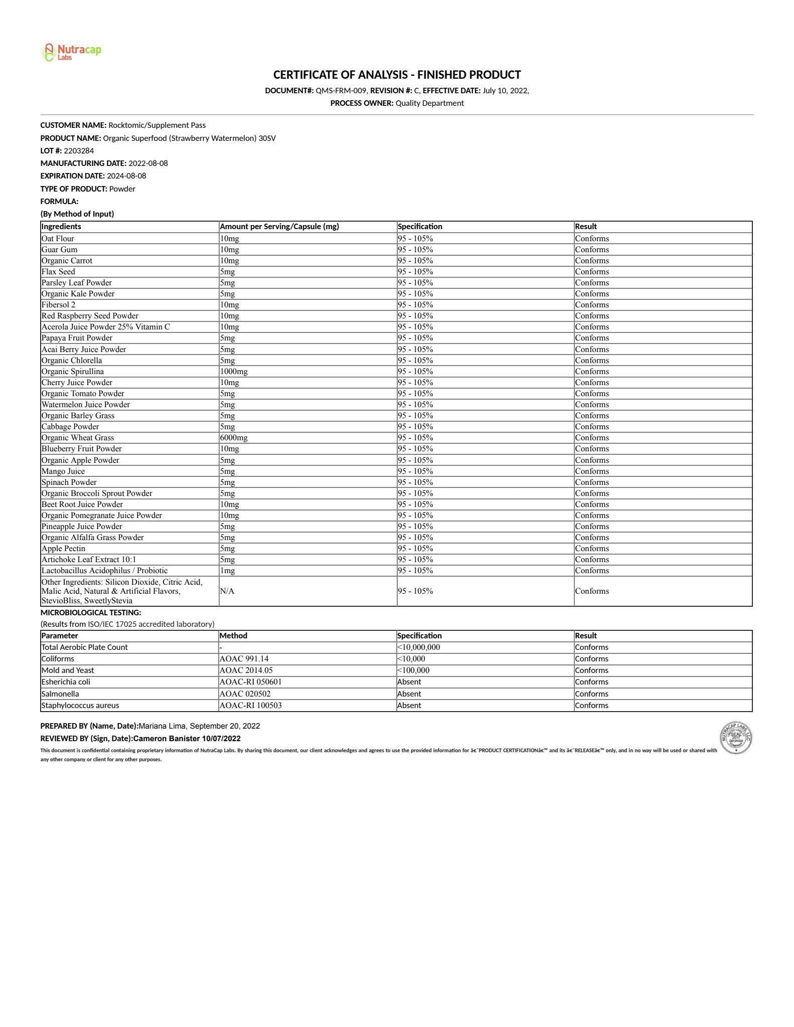 ● Supports digestive health, increased energy, antioxidant support, reduced inflammation, detoxification, and cognitive health. (303,304). ● Supports antioxidant function via high levels of carotenoids that protect against DNA damage and scavenge free radicals (303,304). ● Supports antioxidant function via high levels of chlorophyll, flavonoids, and stimulation of various immune cells, including T cells, NK cells, and monocytes (305,306). ● May combat carcinogenesis via inducing cancer cell apoptosis (cell death) (305,306). ● Supports digestive health via amounts of naturally occurring enzymes and phytonutrients (305,306). |