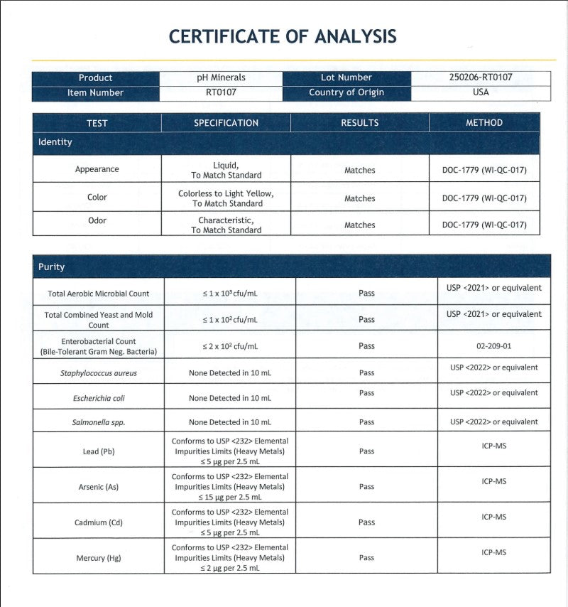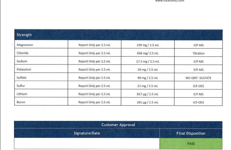 | 2. High quality ionic minerals in a bioavailable and efficaciously dosed formula. | 2. Uses cheap ionic minerals that may have heavy metals due to poor product quality and non bioavailable sources of nutrients. |