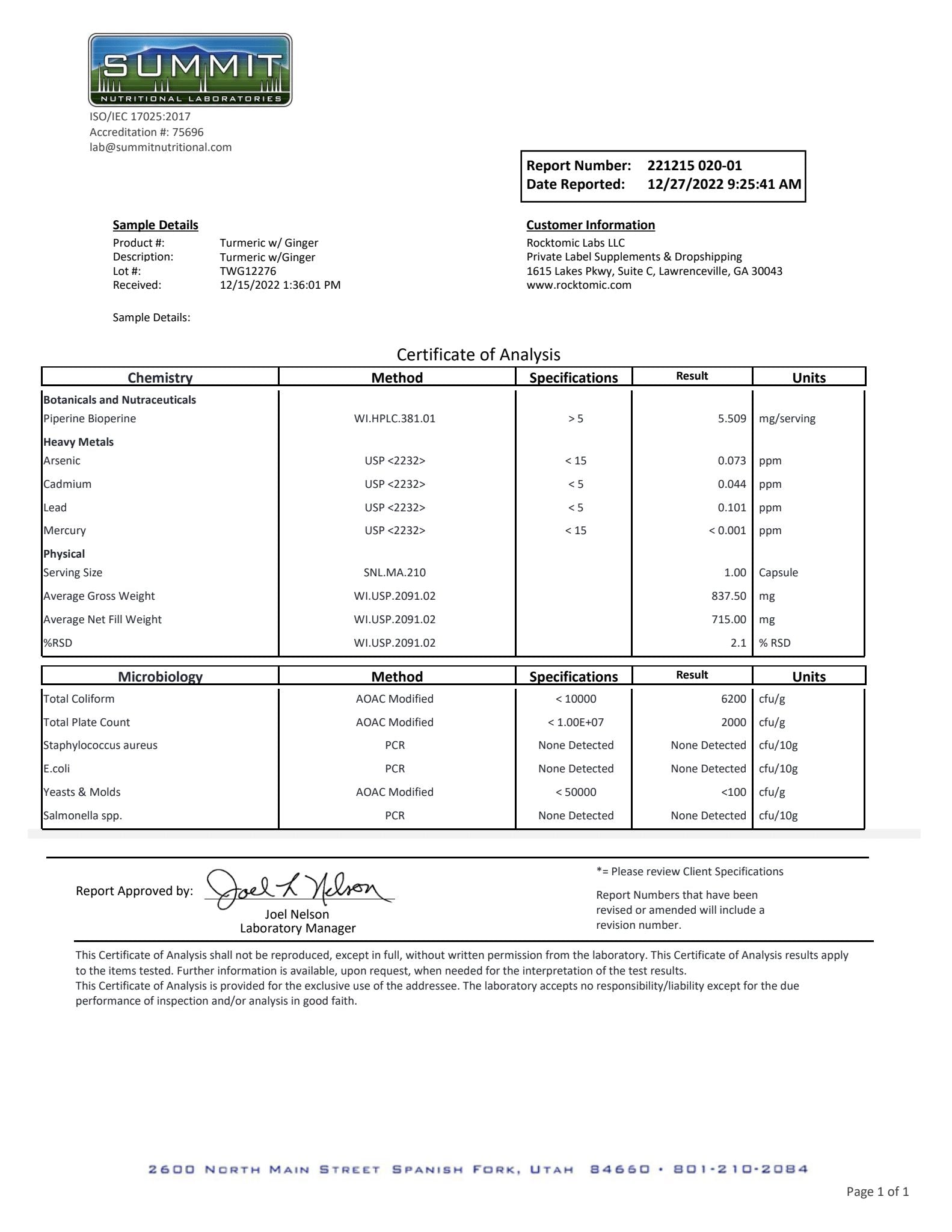Turmeric with Ginger is formulated to support joint health, reduce inflammation, reduce joint pain, support cardiovascular health, support immune health, cognitive health, reduced blood sugar levels, sexual health, recovery from exercise, and increase joint flexibility. Our product is synthesized utilizing the latest scientific research and formulated with organic sources of turmeric, ginger, and curcumin. Our formula is third party independently tested for heavy metals, impurities, made in the USA, GMP certified, and produced in an FDA registered facility. 1% of the supplements on the market can match our world class standards. |
